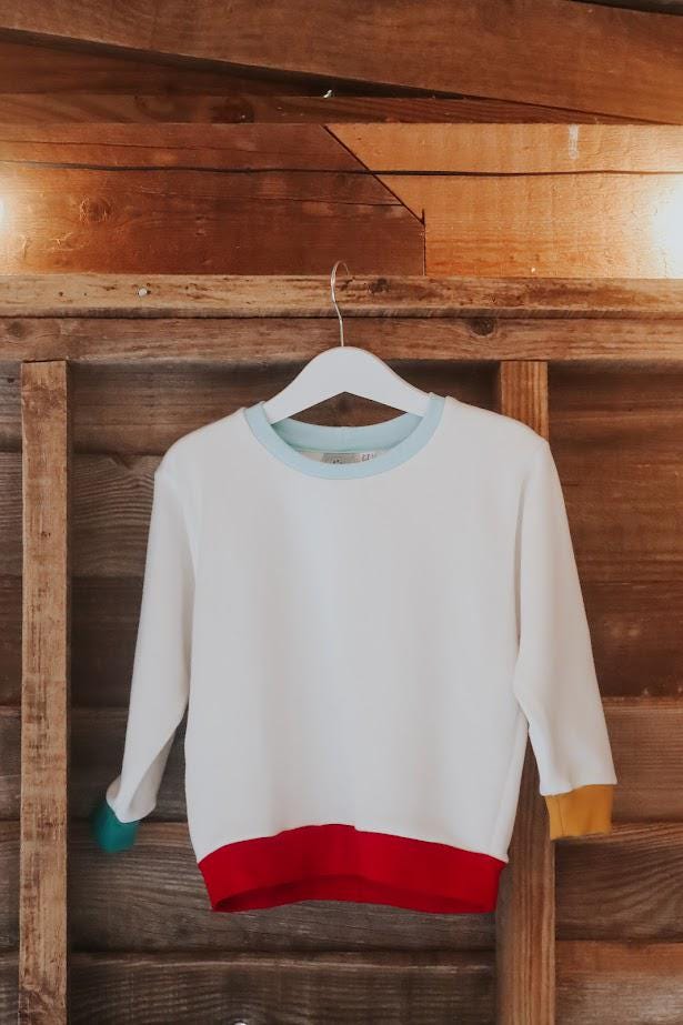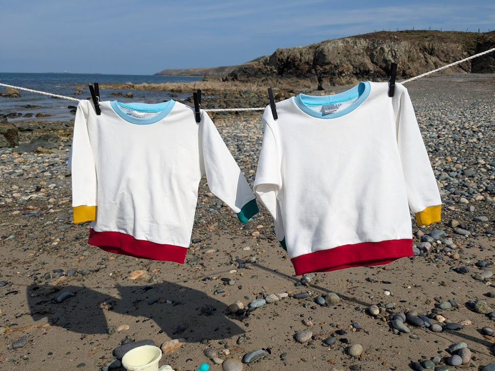 Children's Sweatshirt soft cotton Ecru French Terry fabric with fun Rainbow of Colours on cuffs and neckband -0-6 years-Kid's-Gift