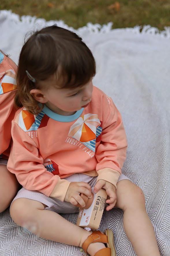 Children's Sweatshirt soft cotton French Terry fabric fun Beach theme Favorite Place print in bright cheerful colours 0-6yr Kid's-Gift
