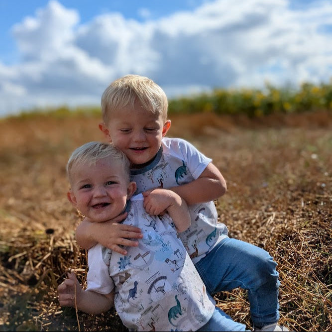 Children's T Shirt Dinasour Print 0-6yr Kid's-Children's Gift-matching sibling T Shirts Dinosaur themed Neutral colour print-Baby/Toddler