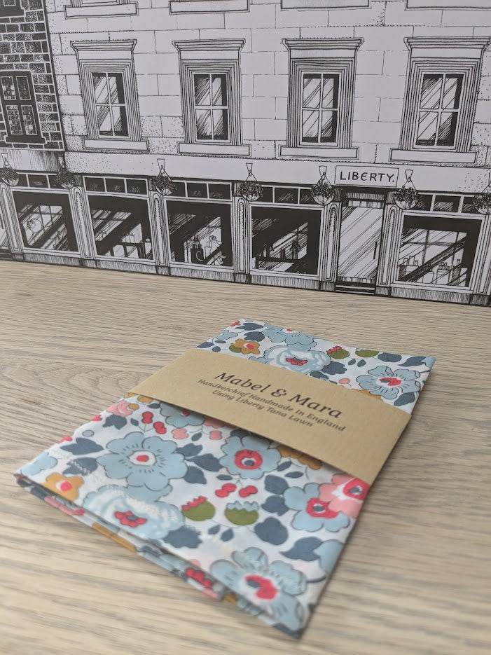 Handmade handkerchief made using soft Tana Lawn 100% cotton fabric from Liberty of London