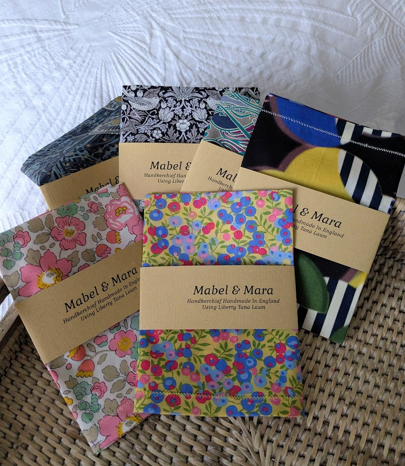 Liberty Tana Lawn fabric is a beautiful soft cotton fabric which comes in a variety of distinctive patterns, I have been using this fabric for over 20 years to make these fine handkerchiefs, with neat little hems.